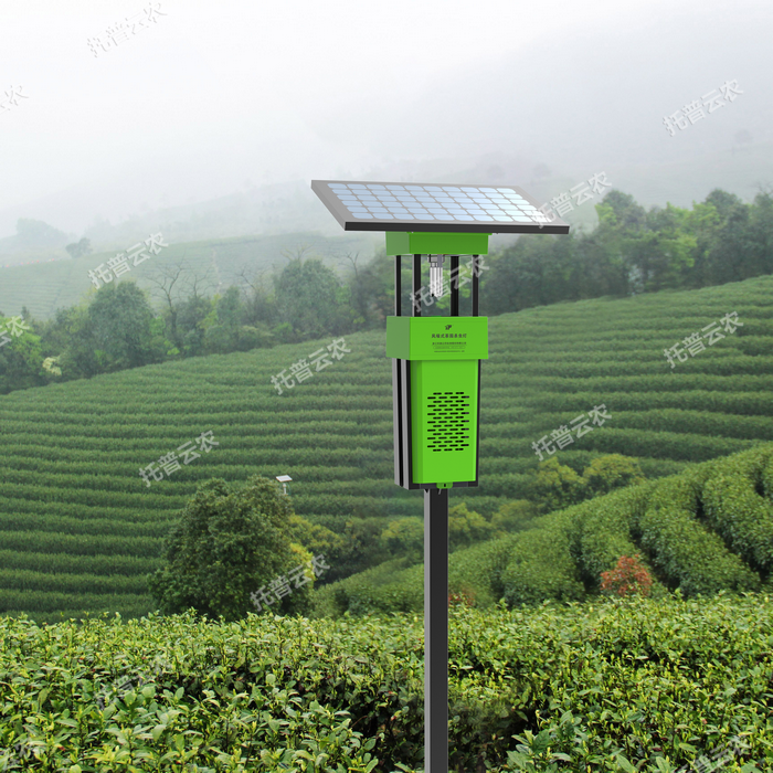 風吸式茶園殺蟲燈是用于茶園綠色防控的風吸式殺蟲設備!它采用太陽能供電方式,能安裝于茶園中對常見的茶尺蠖、茶小綠葉蟬、茶毛蟲等害蟲進行精準誘殺。它利用光波引誘害蟲成蟲撲燈,通過風機轉動產生負壓氣流將蟲子吸入到收集器中,使之風干、脫水而達到殺蟲的目的。此外風吸式茶園殺蟲燈還具有聯(lián)網功能,可將監(jiān)測的數(shù)據上傳至物聯(lián)網云平臺,用戶通過網頁端和手機APP即可遠程查看!